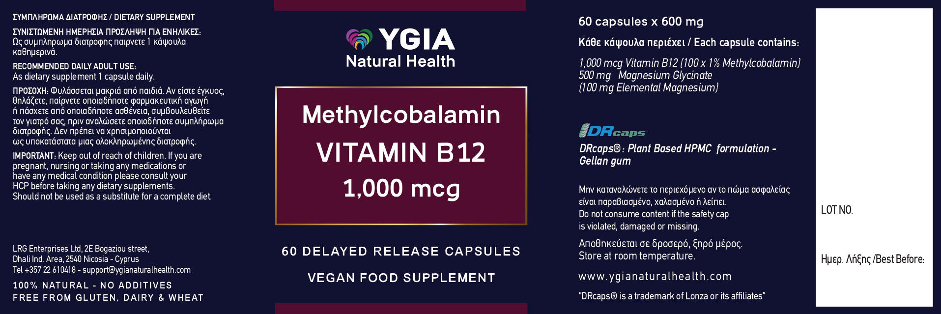 Methylcobalamin Vitamin B12 -1,000 mcg ♦ 60 Veg Caps X 600mg ♦ Amber Glass Bottles ♦ Non-GMO ♦ Gluten & Dairy Free ♦ No Additives