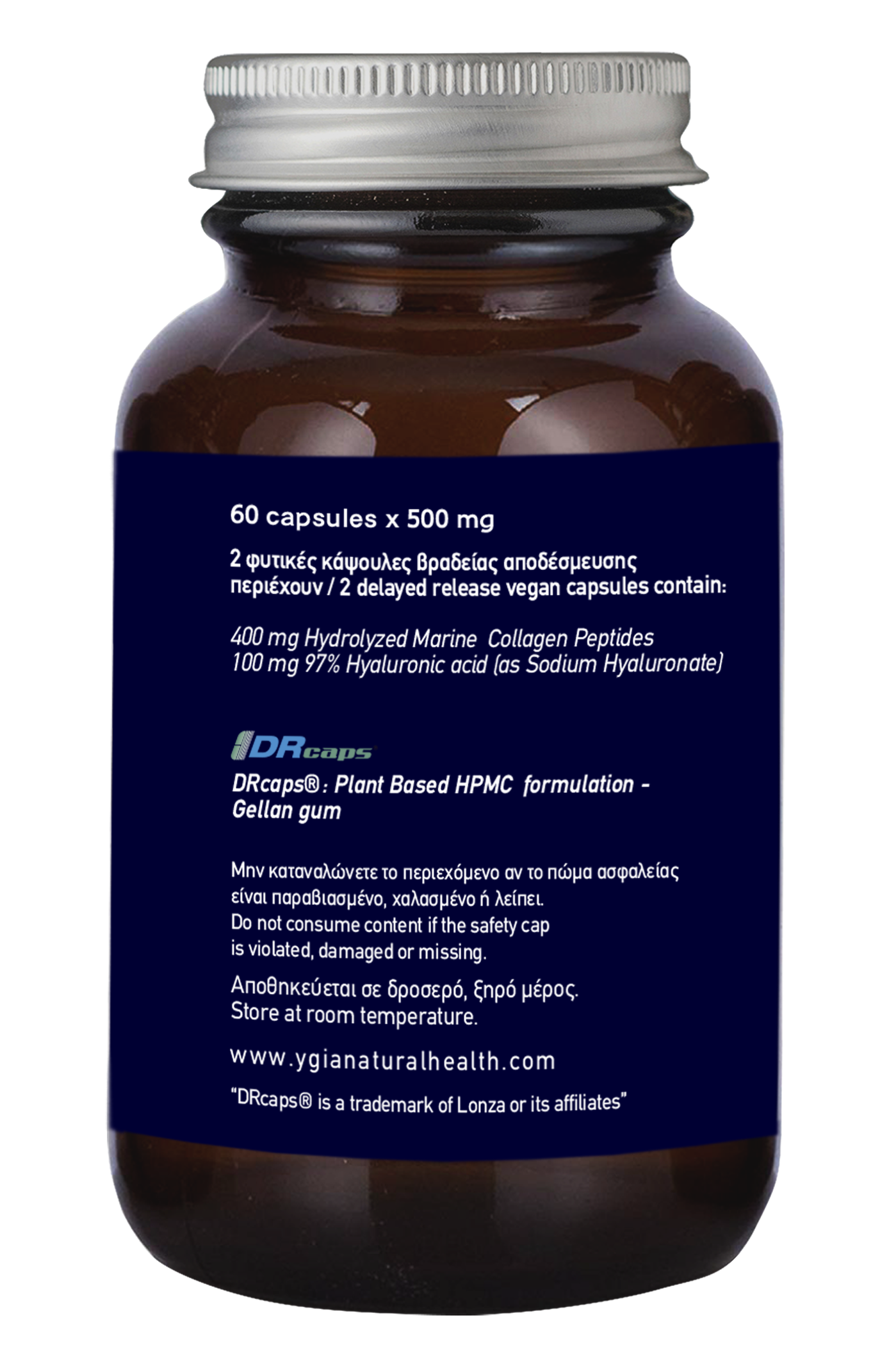 60 delayed release vegetable capsules X 450 mg in amber glass bottles